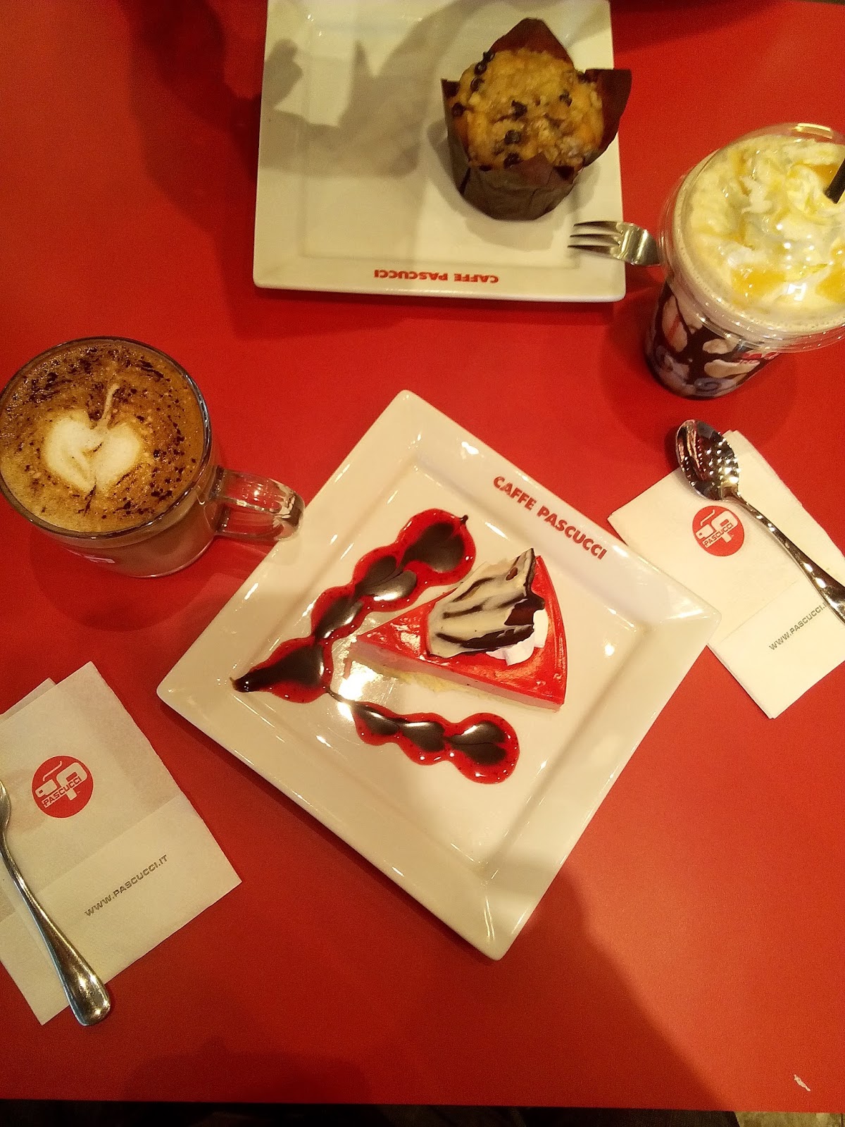 On my next visit, I brought my friend Sheene here right after attending worship service in Victory. It was a humid that day and the pictured menu of their Fraspuccio, Caffe Pascucci's own version of frappuccino, tantalized us. I was actually eyeing for the Fraspuccio Matcha but Sheene's also eager to try it as well. So I instead conceded to the barista recommendation to try the Fraspuccio Confuso, basically a caramel frapp drink. And I was satisfied with it. I was hoping to try a Sweet Patti Cakes cupcakes that day but they've already ran out of supply so we settled for some muffins. A banana and a blueberry. Moist and nicely perfumed with their fruit essences.