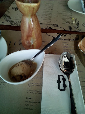 I was also given a complimentary dessert, the Balsamic Vinegar Ice Cream w/ Honey Dew Syrup. How gracious of them. The sharp tang of vinegar melding with the sweetness of the syrup. This really perked me up a little and I involuntary fluttered my eyelids after a tentative spoonful.
